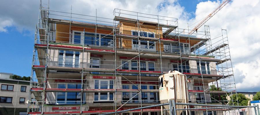 Die Bauarbeiten kommen hervorragend voran, das erste Haus wird aktuell im inneren ausgebaut, für Haus B entsteht gerade der Rohbau. Noch gibt es in beiden Häusern Wohnungen zum Kauf. Der Wohnkomplex "an der Rößlermühle" besteht aus zwei nahezu baugleichen Gebäuden,